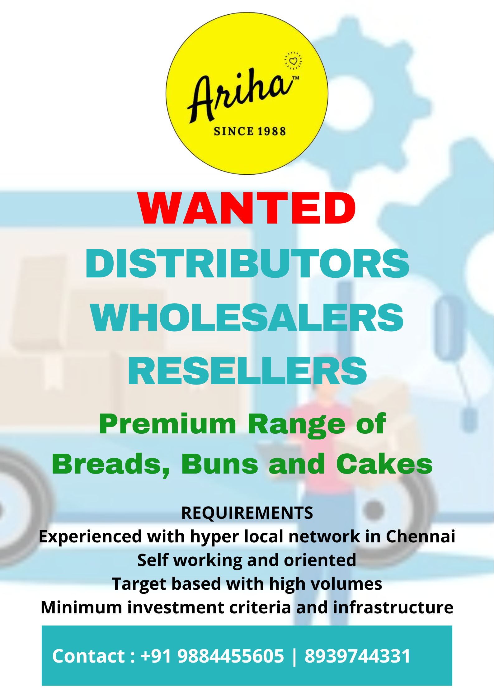 Looking for distributors, wholesalers and distributors across chennai for premium range of breads, buns and cakes.